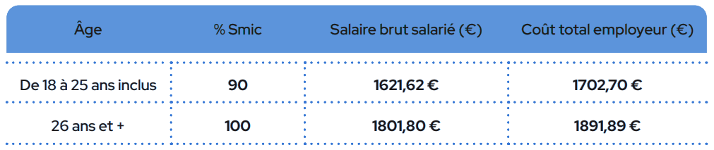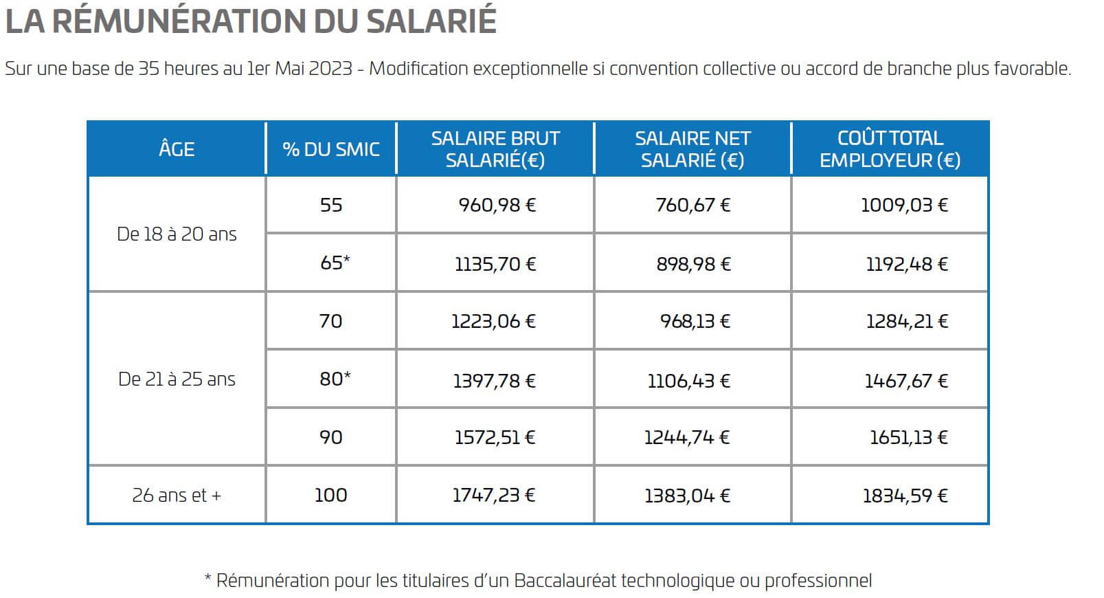 La structure verse une rémunération en pourcentage du SMIC au salarié. Aucune indemnité de fin de contrat n’est due.