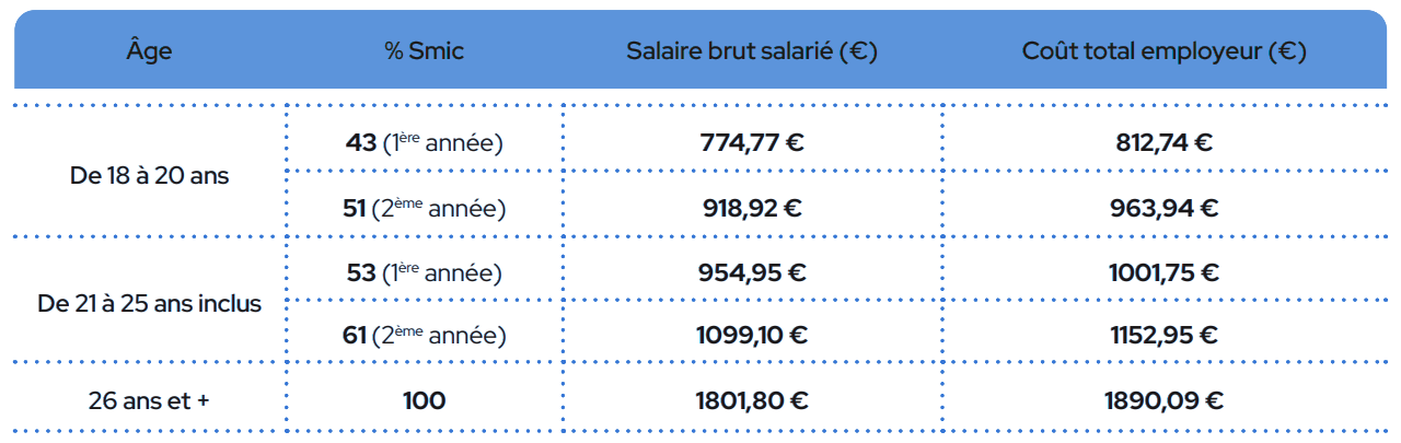 La structure juridique verse une rémunération en pourcentage du SMIC au salarié.
